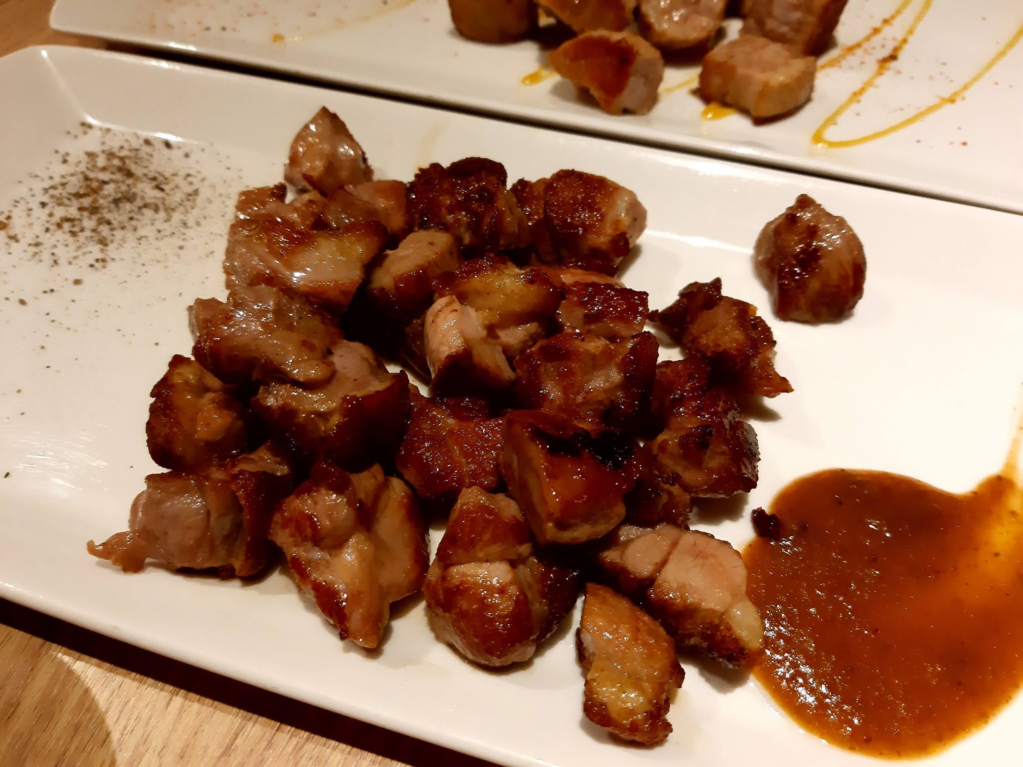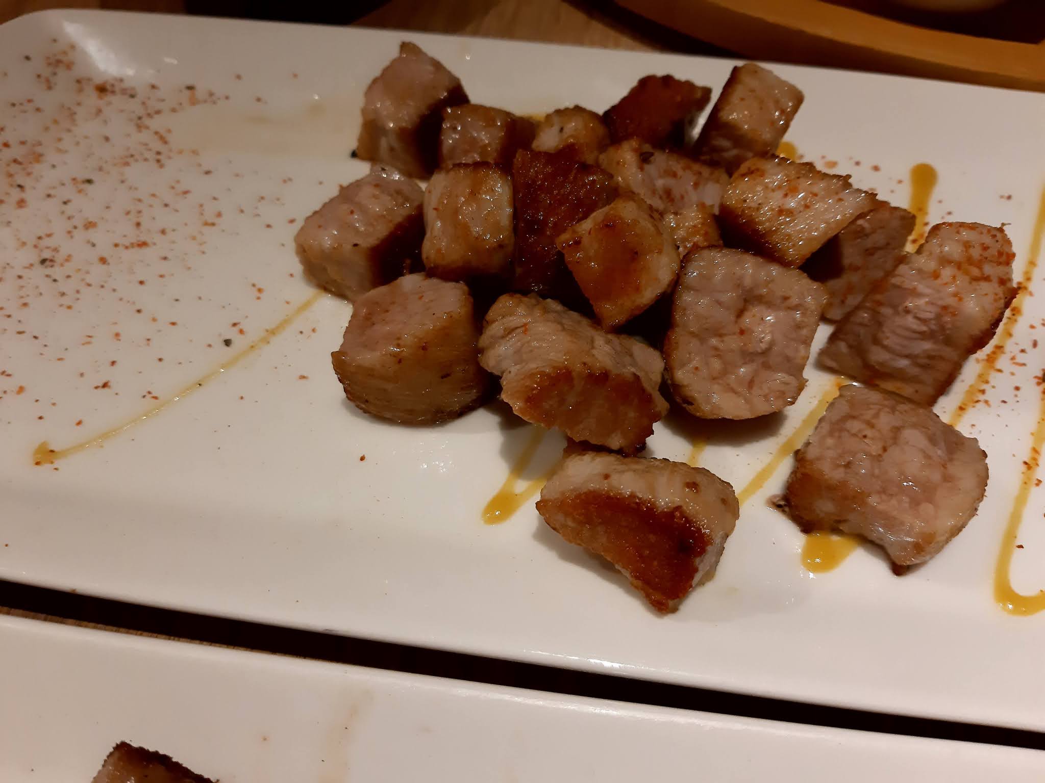 因為老媽不吃牛,通常外食不是吃豬就是雞,看到有雪花豚,MENU上照片還切成方塊狀,像極了牛排,好奇之下就點了。香煎原塊雪花豚,也很好吃,這次居然顛覆我的想像,鴨及豬都比牛排棒耶。或許是因為太少鴨、豬可以做得這麼好吃的(自己也很難料理)。