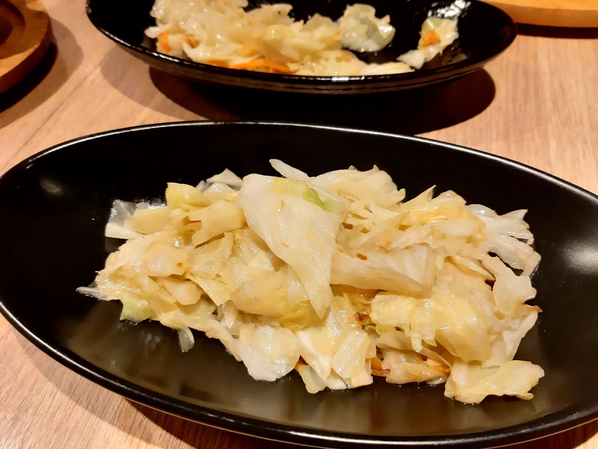 食蔬,鐵板高麗菜,可惜Hot7蔬菜只有一種,沒有豆芽。