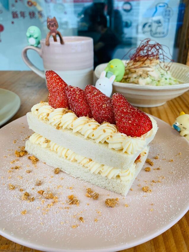應網友熱推再度推出的草莓卡士達吐司也是令人驚豔!卡士達醬不會甜膩,剛剛好的甜度搭配酸甜草莓,柔軟的吐司陪襯超級上癮~