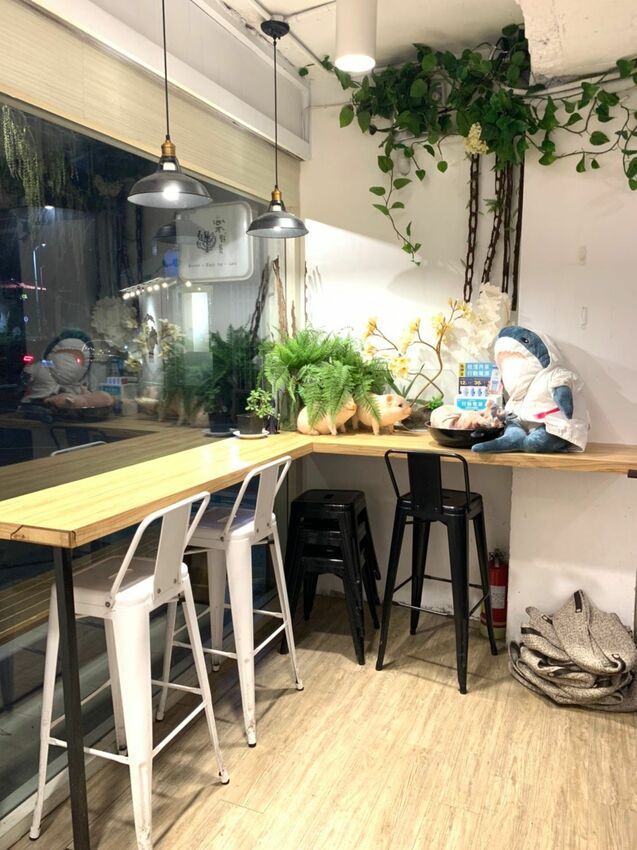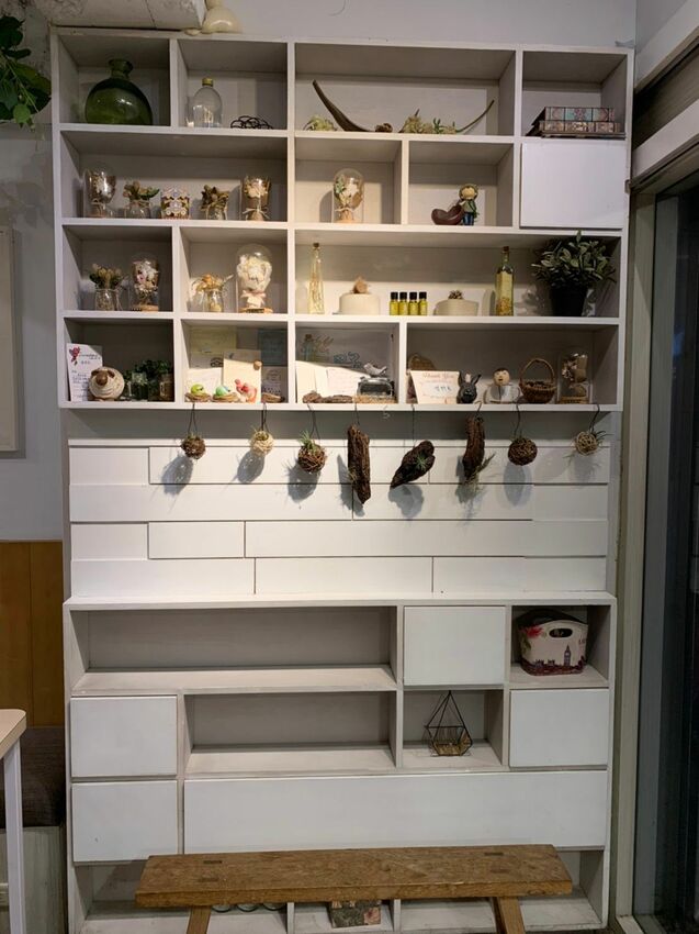 店內四處都有植物、鮮花等裝飾小物,走森林系風格,白中一點綠非常有「生氣」!