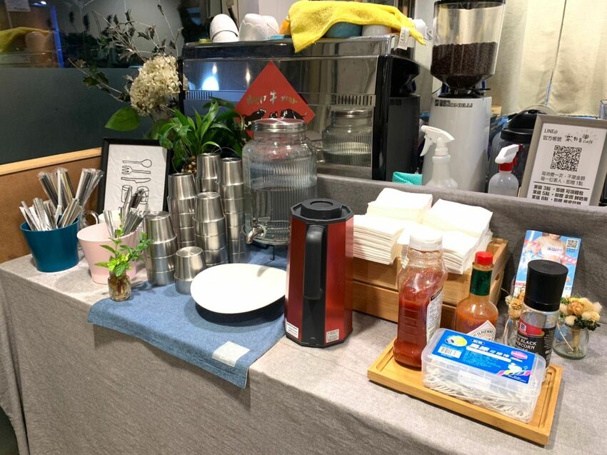 樂野食不收取服務費,所以餐具、紙巾等等都都自取喔~~