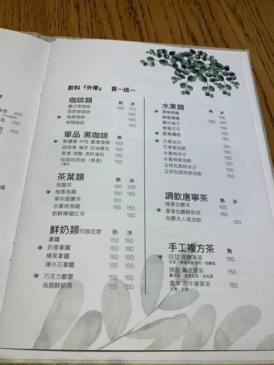 - 飲料(青梅果醋或南非國寶茶)換飲料可抵50元
