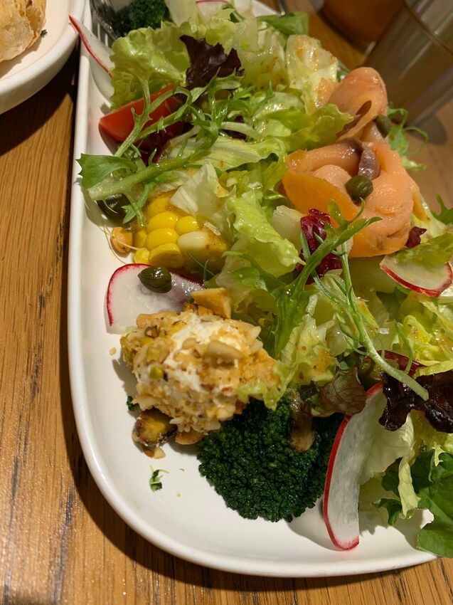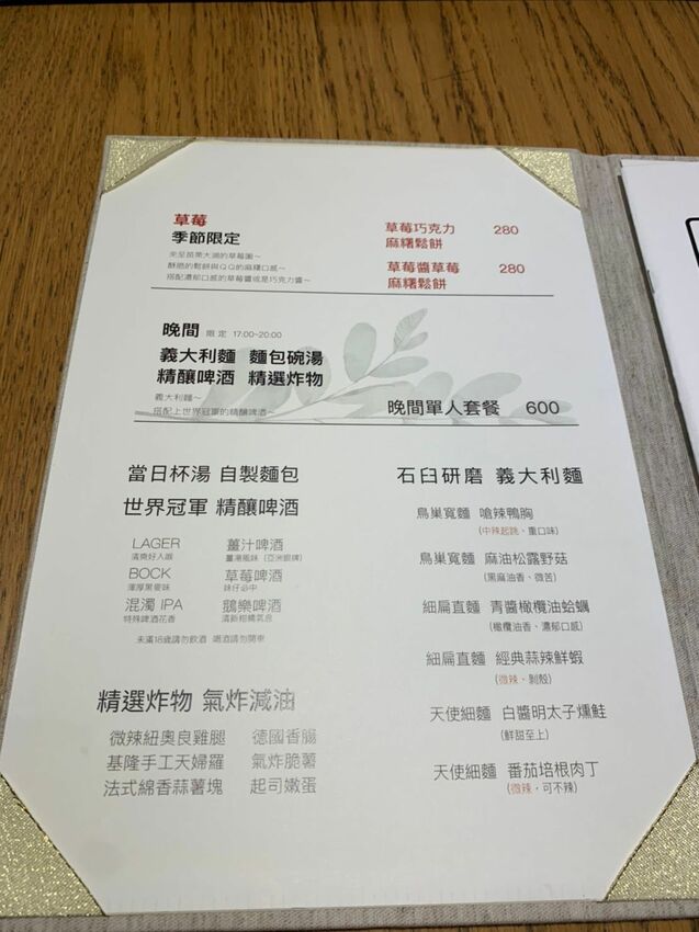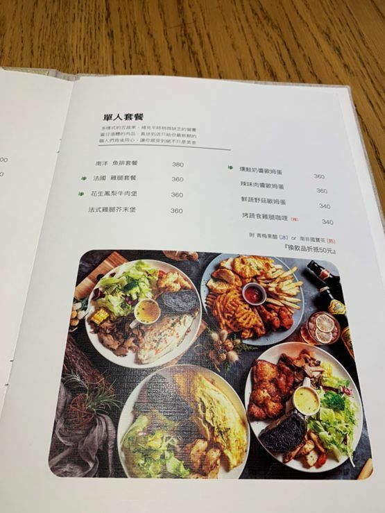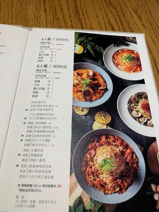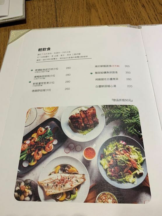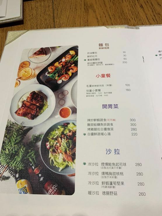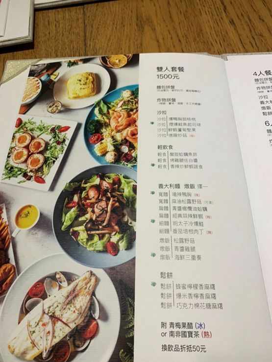 - 沙拉四選一(燻鴨胸甜核桃、煙燻鮭魚起司球、蝦蘆筍堅果、德腸鮮菇)