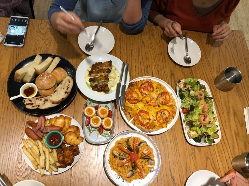 今天我們點了雙人套餐再單點了披薩和飲料,我們四個人吃吃到非常飽,雙人餐可以三個人吃因為分量很大、餐點非常多!!