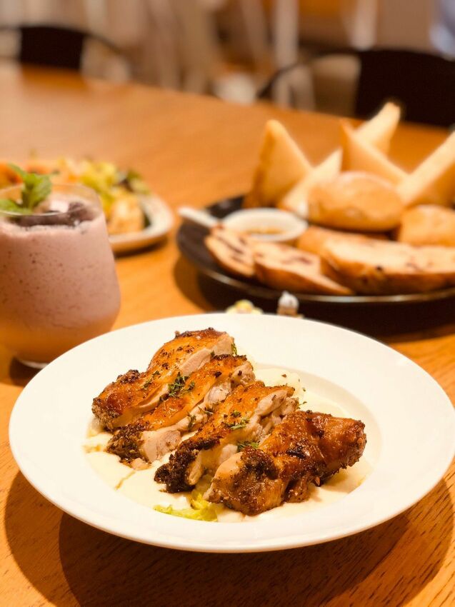 這道是我媽媽和阿姨非常喜歡的一道菜!老闆說是模仿港式料理,再搭配一點西式的點綴和擺盤做出的!上面的雞腿非常鮮嫩,雞腿排的味道不重,搭配下面的白醬燉白菜,真的是好吃到不行!白菜是脆脆的,搭配軟嫩的雞腿真是絕配~