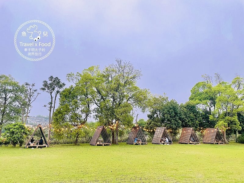 大樹下的三角木屋既有野餐概念,也營造出露營的氛圍,