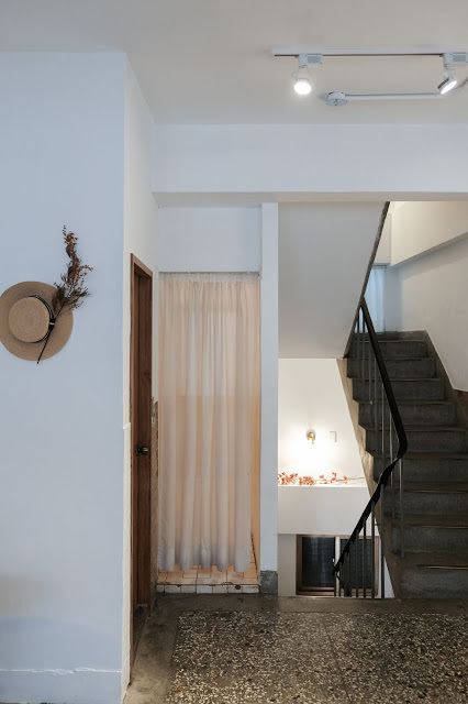 純白牆面與老宅面磚或地板彼此之間的相得益彰,