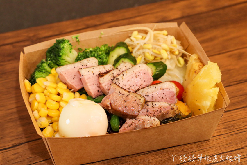 很少在健康餐盒店吃到櫻桃鴨胸,讓ㄚ綾綾好期待唷!鴨胸份量很足夠,舒肥後的鴨胸肉質呈現粉嫩色澤,比雞腿還要好吃!皮Q肉嫩、肉質鮮甜,櫻桃鴨胸表皮還有經過炙燒,因此略帶烤過的香氣,實在好好吃!推薦大家點!另外,舒肥蛋熟度介於溏心蛋與溫泉蛋之間,呈現半凝固狀,整體營養滿分。