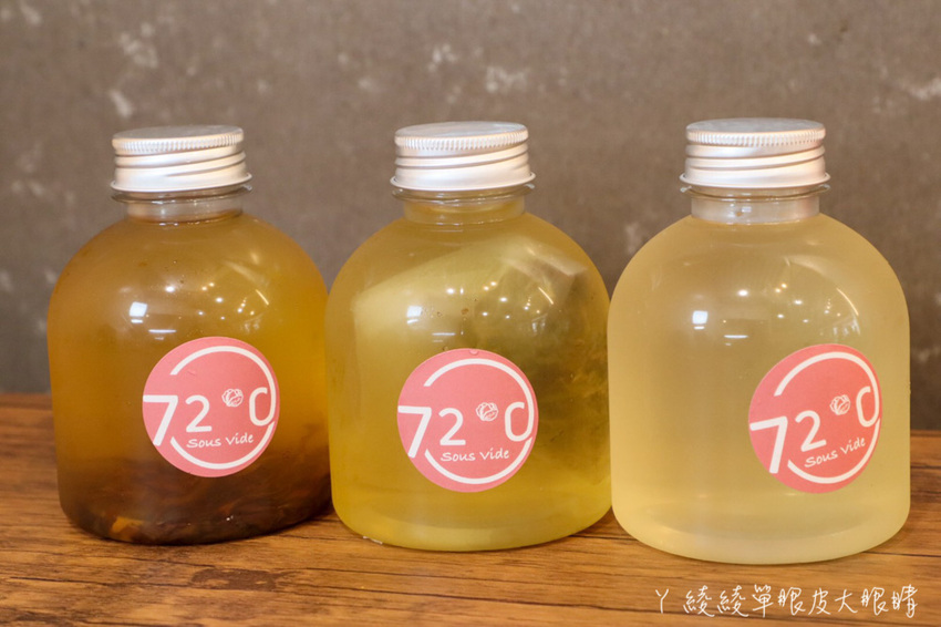 72度c 舒肥健康餐目前有冷泡玉露青茶、冷泡紅玉明珠、微酸蘋果醋三款飲品,飲品單賣$50元,只要點便當就可以$19元加購飲料,省好多呢!