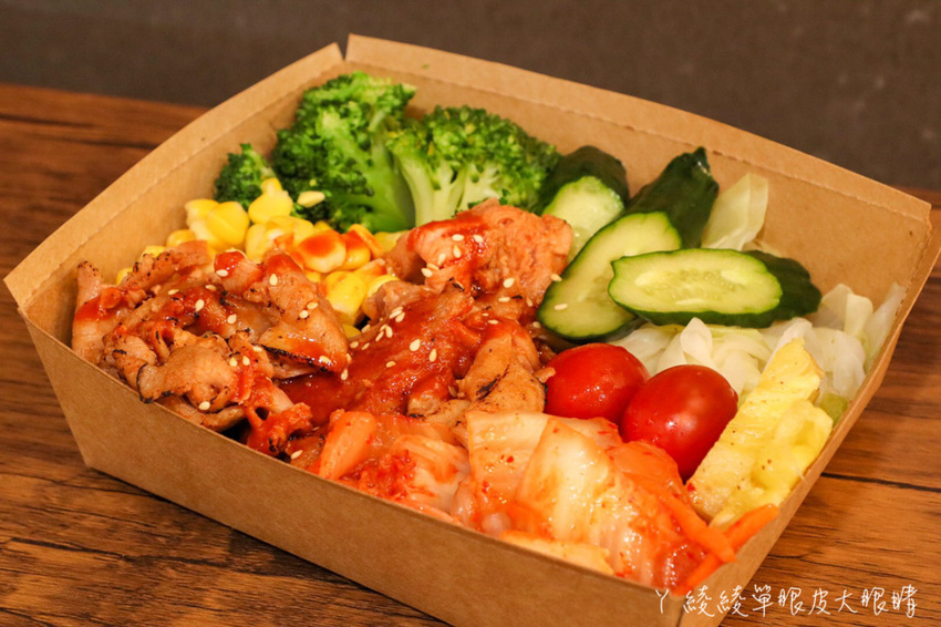 一大隻去骨雞腿鋪滿在紫米飯上,看起來很豐盛!雞腿十分嫩口,加上來自花蓮的剝皮辣椒更是令我驚豔,口感軟脆極了!店家特製的麻辣醬有一點像麻辣鍋湯底的風味,麻而不辣,要是能再提升醬料香氣就更棒了!這款健康餐盒口味的CP值挺高的。