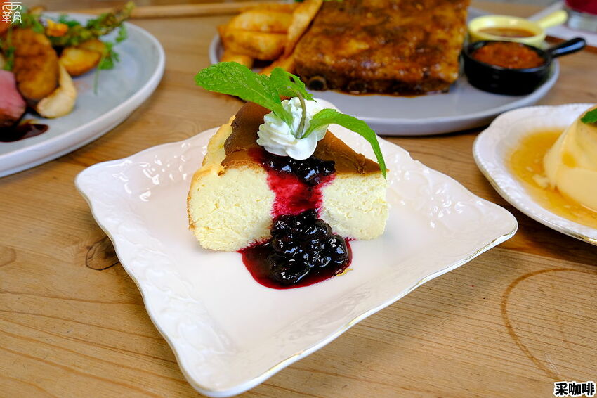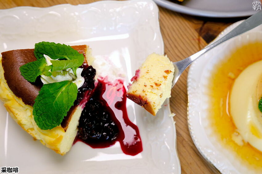 乳酪蛋糕濕潤綿密,入口即化的微酸滋味配上鮮奶油及野莓醬真是滑順又香甜,難怪會有客人想要訂購整模巴斯克乳酪蛋糕,愛吃乳酪蛋糕的朋友肯定會喜歡。