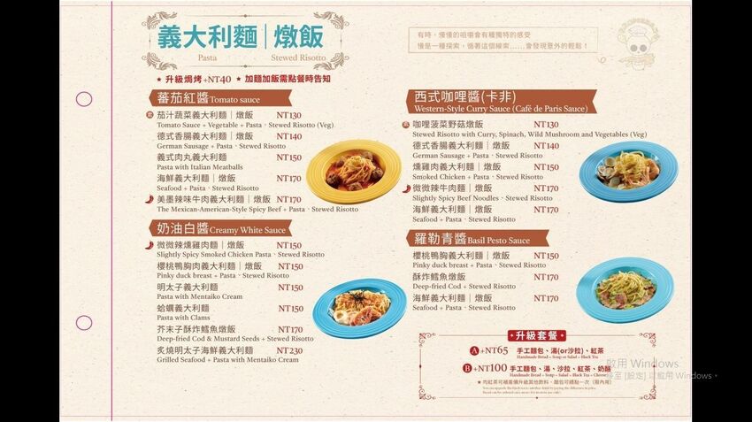 升級套餐:手工佛卡夏麵包、主廚精選濃湯、沙拉、特選紅茶