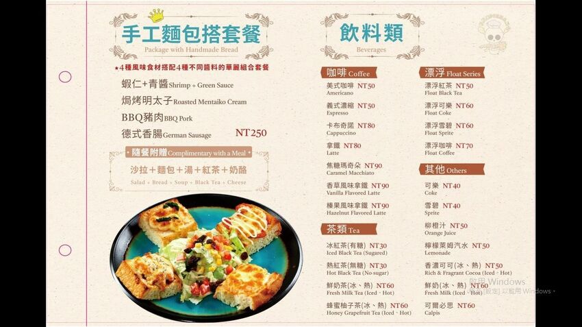 B-手工麵包,濃湯,沙拉(凱撒or胡麻醬),紅茶,自製奶酪(口味以現場為主)