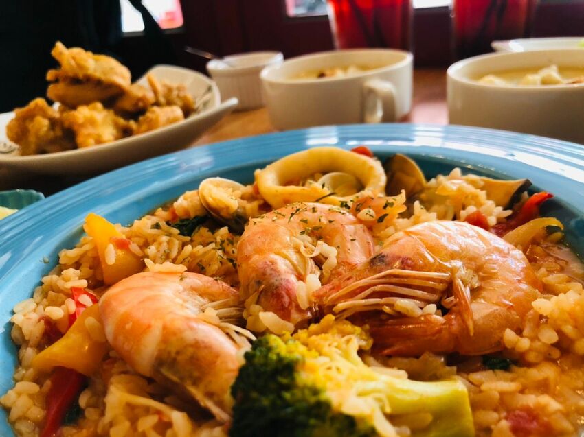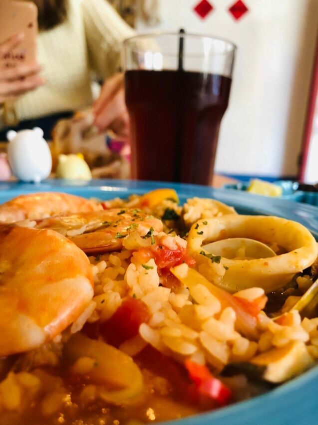 我很喜歡吃燉飯!料給得很豐富~有超大蝦子、彩色甜椒、透抽、花椰菜等等,口味很好喔~但飯粒偏濕,如果乾一點會更好!