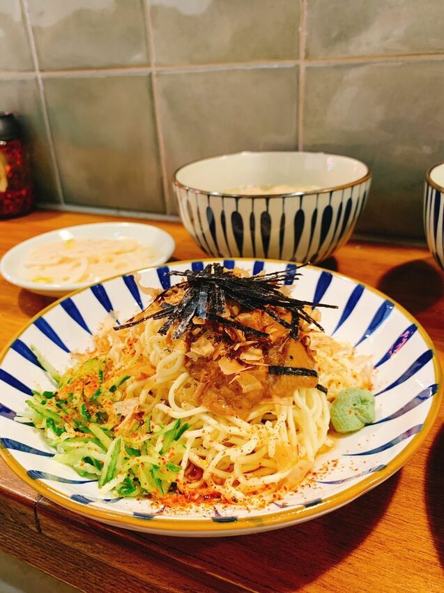 和風柴魚涼面的麻將少了些,取代的是和風柴魚露