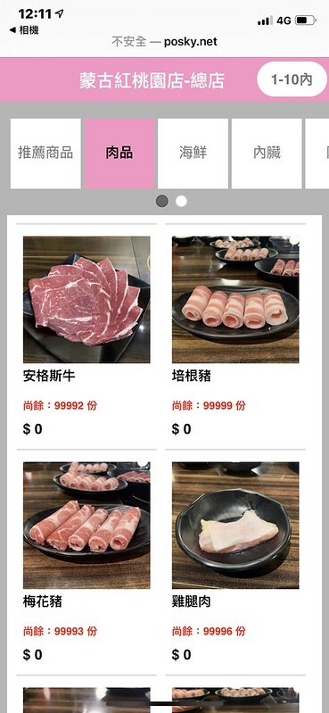 操作的頁面也很簡單,肉類、海鮮、內臟類的品項都是直接加點就可以囉。