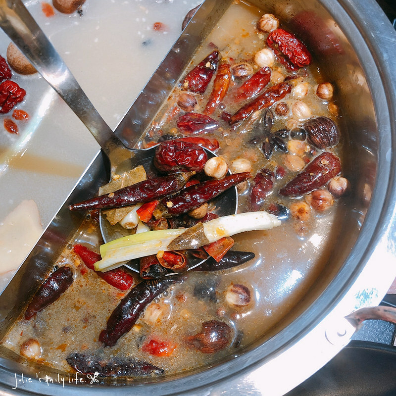 紅鍋因為沒有辣油相對來說清爽很多,但也不會不夠味唷。