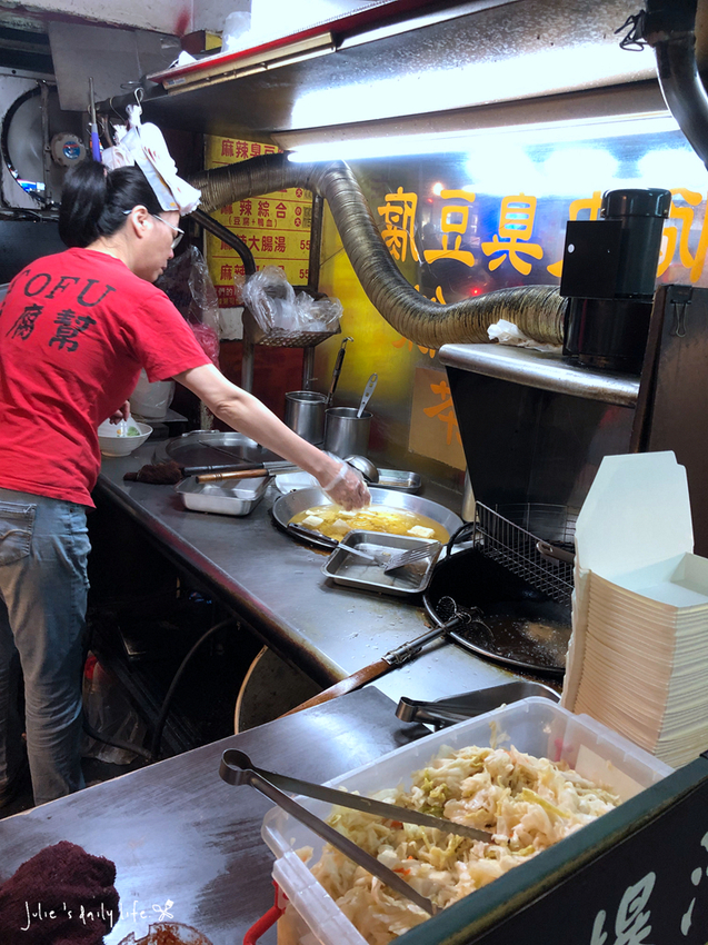 可以看到臭豆腐是方形下去炸,然後中間挖洞放醬料,跟台式的不太一樣。