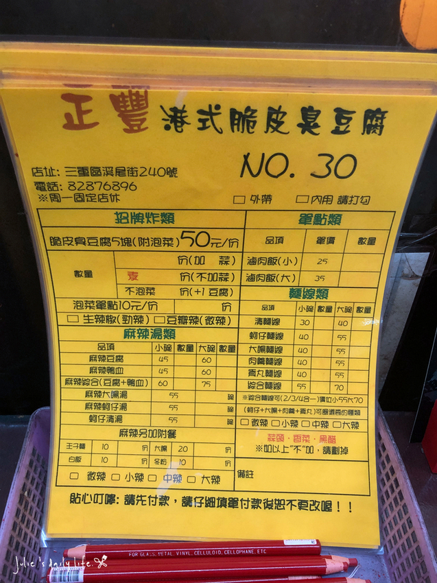 - 銅板價美食-三重小吃-正豐港式臭豆腐-麵線、臭豆腐、脆皮臭豆腐-附菜單