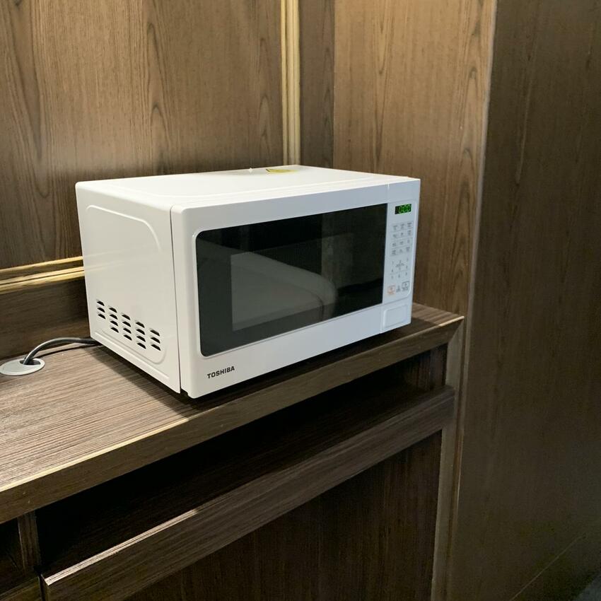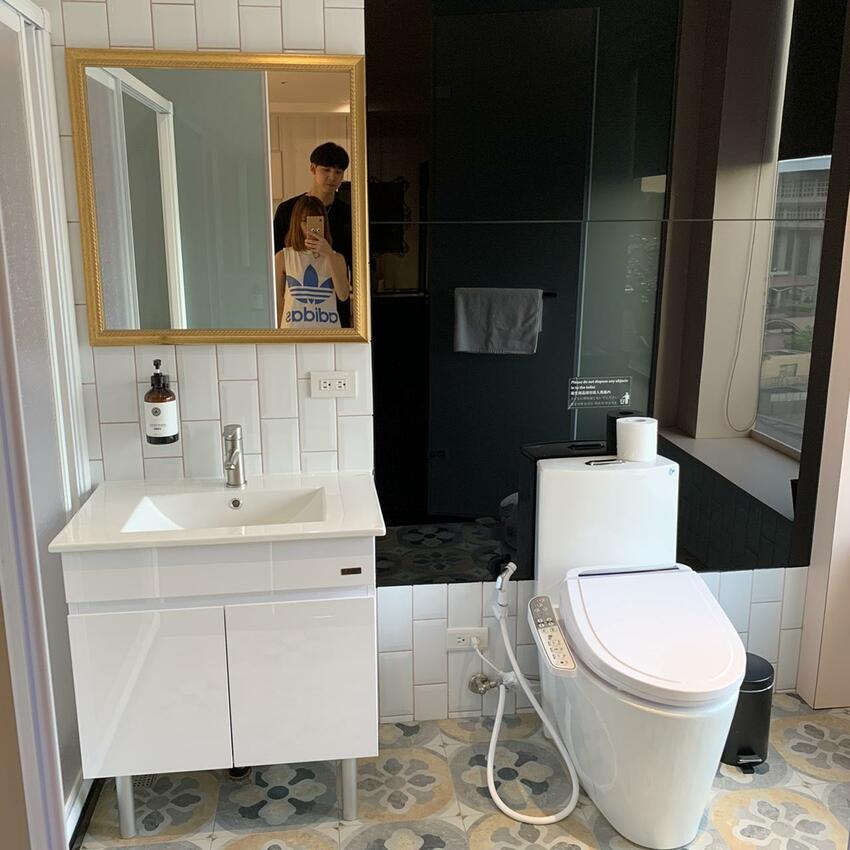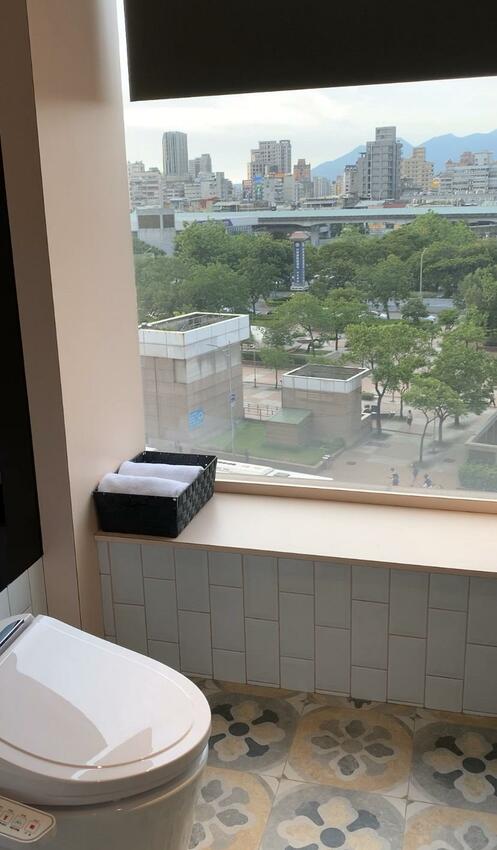 觀景雙人房內設施有獨立空調、50吋液晶電視、冰箱、熱水壺、吹風機、衣櫃、桌椅、獨立衛浴乾濕分離設施、免治馬桶、和免費盥洗用品等