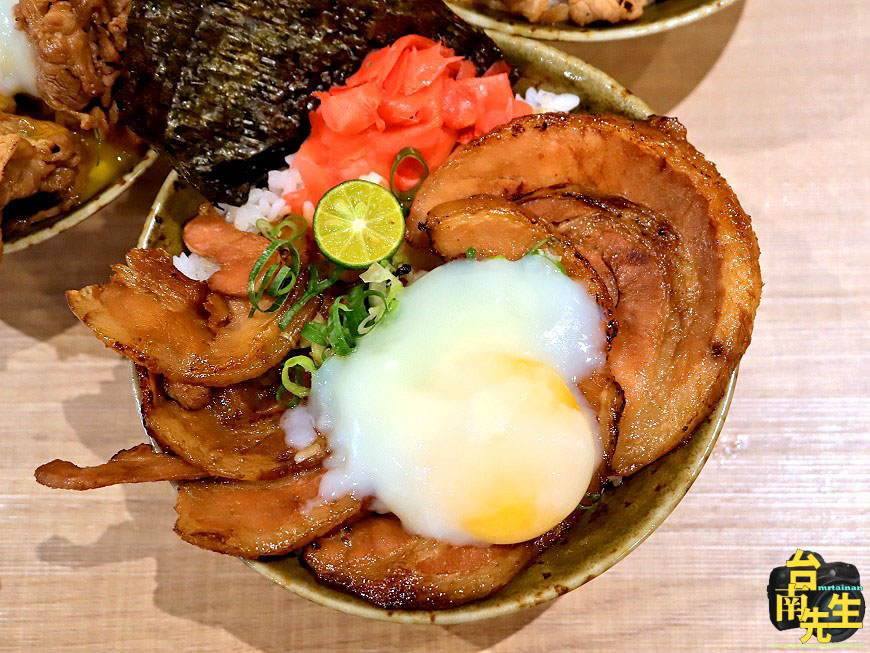 炎神炙烤霜降牛排丼:採用美國CAB認證prime等級的安格斯黑牛,搭配獨家秘製燒肉醬,炙烤約至5~6分熟,肉質軟嫩鮮甜帶點嚼勁
