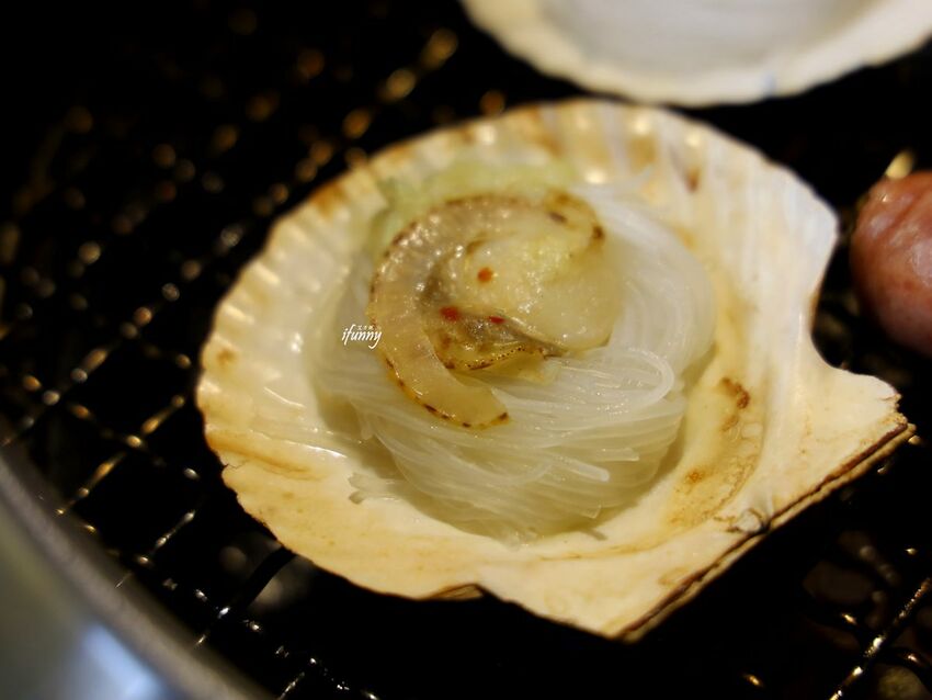 在扇貝殼上依序放上粉絲、蒜蓉及扇貝。烤至粉絲變成透明,蒜蓉滲入至粉絲之中,跟著脆彈的扇貝一起入口,滋味濃厚相當美味!