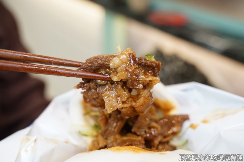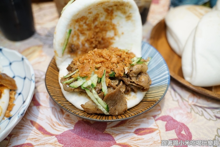 最後一個是眷村胡麻豬肉刈包(豬60元),這個很適合小孩吃喔,胡麻濃郁的甜香不會辣,甜甜的口味與豬肉還蠻搭的,讓人一口接一口。