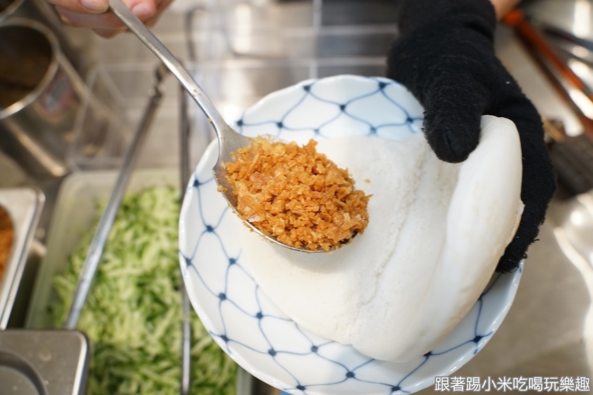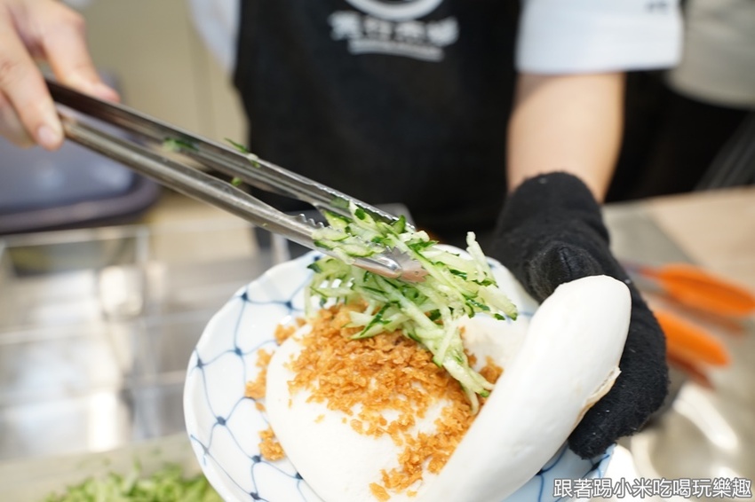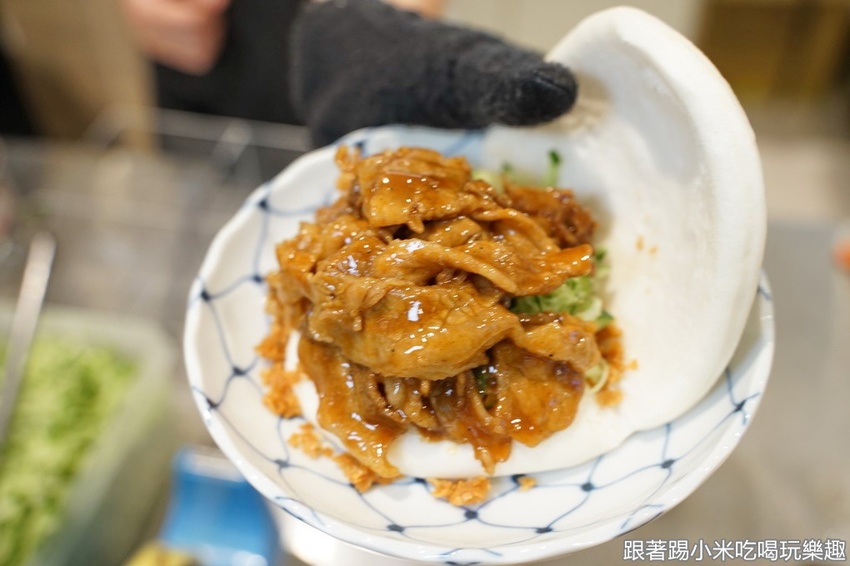 再放上一大坨的豬肉,讓大家吃著刈包有著滿滿的肉肉飽足感啊