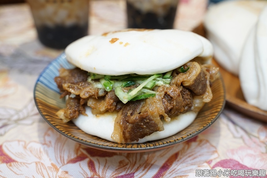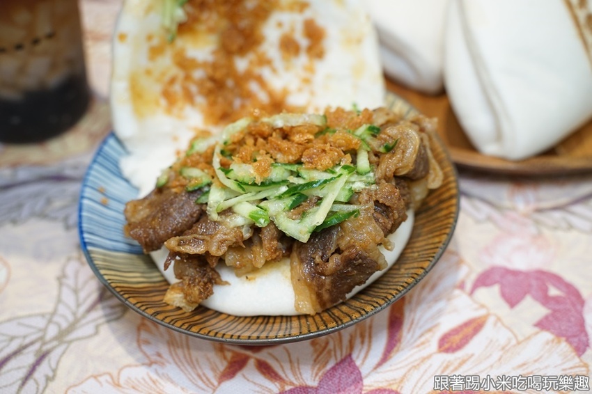 台式沙茶刈包(牛65元),小米建議可以選擇牛肉比較搭,沙茶並不會辣,甜味也很棒,品嚐起來再搭配老油條,好像吃著沙茶牛肉火鍋的感覺XD
