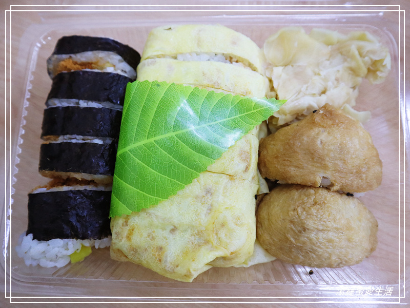 壽司每種單點是45元,這樣一個大綜合是60元,因為好奇所以才點來吃吃看,沒想到原來是阿婆壽司呀——共有海苔壽司/蛋皮壽司/豆皮壽司三種口味,傳統的台式壽司,這樣一盒的份量以蜜蜜個人的食量來說根本吃不完XD,覺得蠻平價的。
