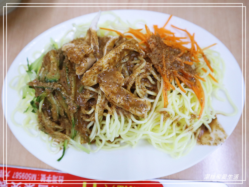 涼麵的份量頗足,小黃瓜和紅蘿蔔絲增添清爽口感,又加了5元的雞絲讓配料更加豐富!原味的醬汁甜甜鹹鹹會涮嘴,雞絲肉不柴,加上淋醬更溼潤不乾。