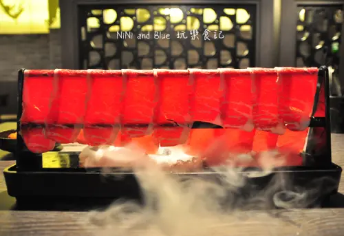 店員多上來的時候會淋上乾冰在肉的下方,瞬間煙霧在桌面蔓延,非常迷幻,如果要拍照的話必點這個,蠻漂亮的,在麻辣鍋裡面涮起來肉其實吃起來差不多,吃起來中規中矩