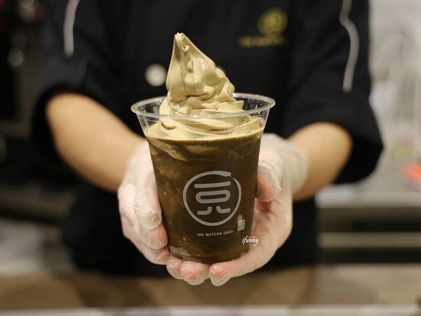 底層是焙茶冰沙,純粹的焙茶香氣,融合了霜淇淋的奶香及香甜,完美的比例創造出清涼的口感及滋味。