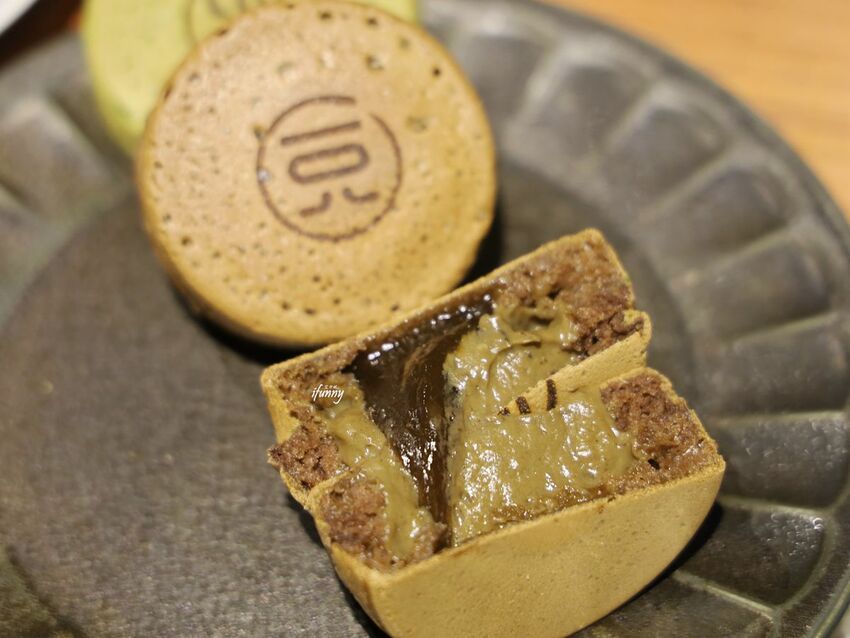 焙茶的餅皮,看起來有點像是巧克力口味。