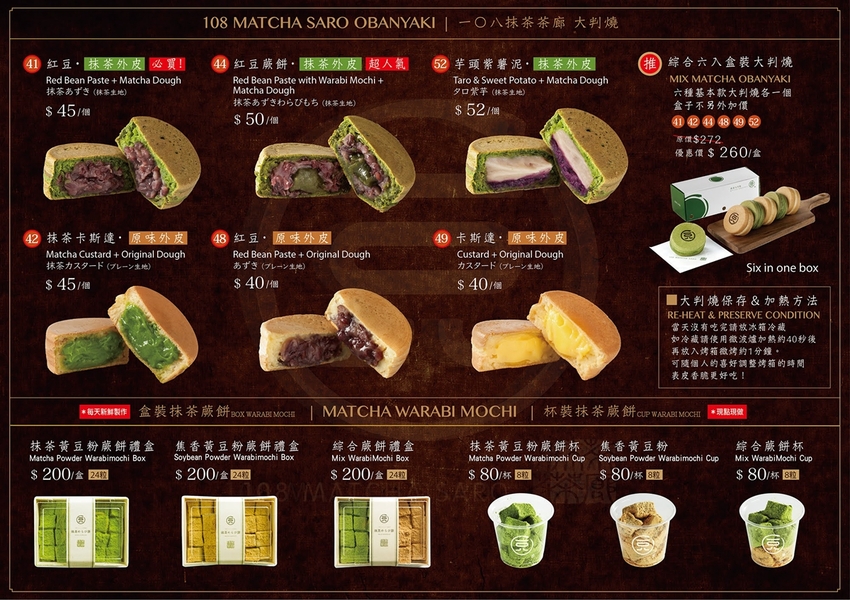 一〇八抹茶茶廊一直以來在口味及品質上有著嚴格的管控,而最主要的是研發新商品的能力,配合季節及市場的變化,取得消費者的眼光並征服其味蕾,讓抹茶控總能嚐到新口味。而新口味的焙茶,堅持高品質的做法,也令我們不用出國,也能嚐到日本在地的正統風味點心。