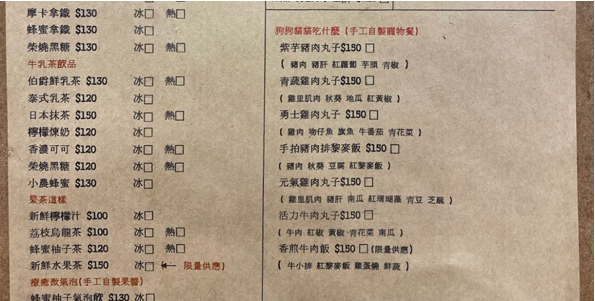 比較特別的是菜單右下角會有專門供應給寵物的寵物餐點(健康又無負擔)店內也有另外販售寵物零食可購買,若是女朋友帶自家寵物過來也能一起用餐拍個一家三口照呢!