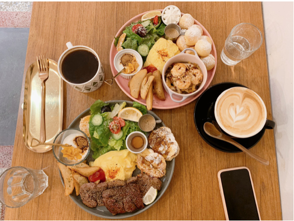 當然店內的餐點也不能馬乎,餐點顏色豐富度怎麼拍怎麼好看,早午餐約有五種選項不至於太難選擇,基本擺盤優格、生菜沙拉、炒蛋、薯塊、主餐及超可愛的小圓鬆餅,從鹹到甜應有盡有,甚至如果女朋友想減肥吃健康路線也有紅藜麥飯的選項。