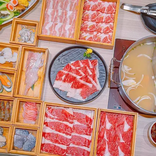 「超夯川麻辣鍋」可說是挑戰桃園火鍋吃到飽新霸主地位!不僅主打和牛吃到飽,光是肉品就有將近20種選擇,連超夯の燒肉招牌的芭比肉盤這裡也能吃得到;招牌湯頭成都酸菜魚更是推薦必點,鮮香微酸又帶有微麻的滋味,搭配白肉或海鮮都很合拍,不需沾醬就很夠味!此外還有溫泉蛋滷肉拌飯、明治冰淇淋、韓國進口霜淇淋、氣泡飲品、咖啡、水果及將近10種麵類通通吃到飽,食材多到要空拍才拍得下,包準飽到天靈蓋不誇張!!