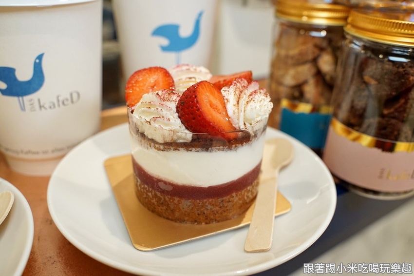 草莓提拉米蘇(180元)有草莓跟提拉米蘇的結合還蠻特別,有年輪蛋糕、草莓瑪莎拉香提、覆盆子莉及新鮮草莓的組合