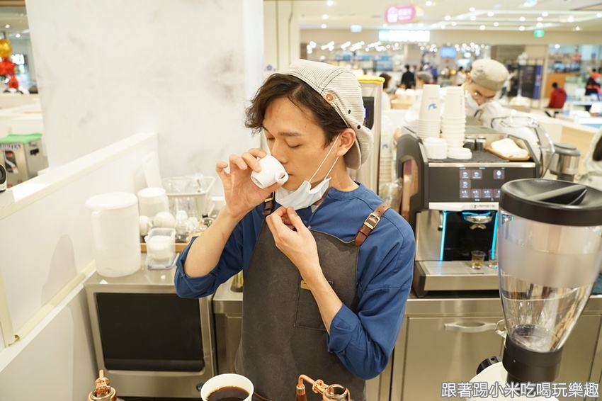 沖泡完咖啡師會先試喝是否達到他想要的標準,如果沒達到咖啡師會大器的重新再沖泡,努力做到最好呈現他們得專業