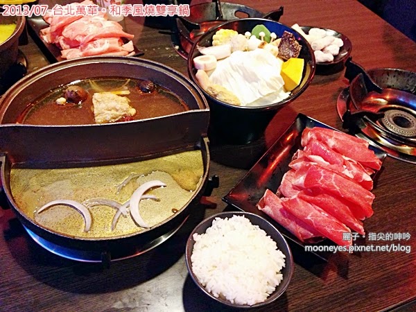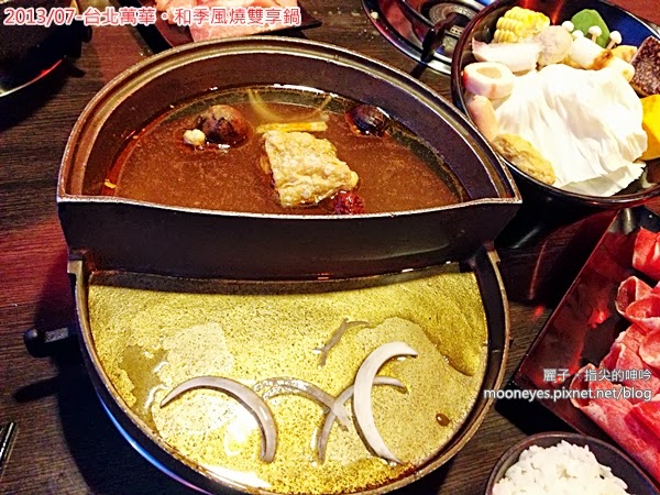 我們吃的是雙享鍋,分別點了咖哩椰奶火鍋+豬肉、蒙古養生藥膳火鍋+霜降牛肉(加價50元)。