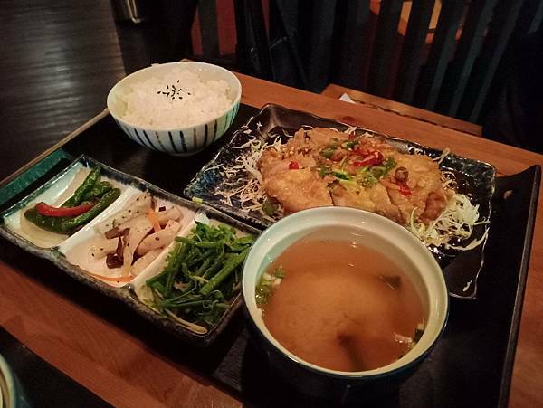椒麻雞定食這裡的椒麻系列蠻帶味的有自己獨特的味道,餓的話其實點定食再加小菜及串物就可以吃的很飽。