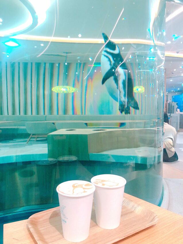 直接現場請出示 QR code掃描後就可以進入水族館,最後還可以喝企鵝拉花的咖啡吃點心,超棒!