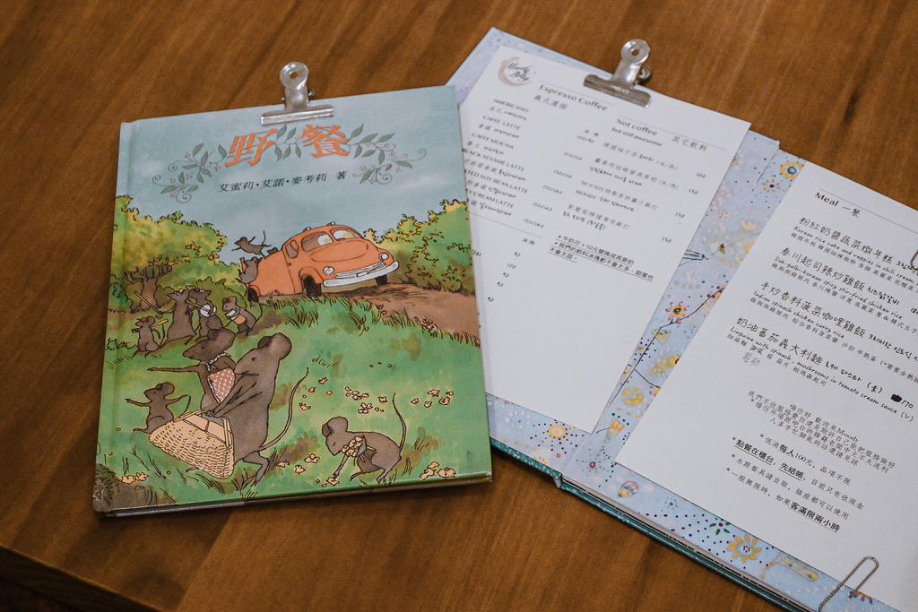 「這是菜單唷」我看了看桌上的兩本童話故事書,打開一看居然是菜單,讓我們會心一笑了一下,也太可愛了啦!