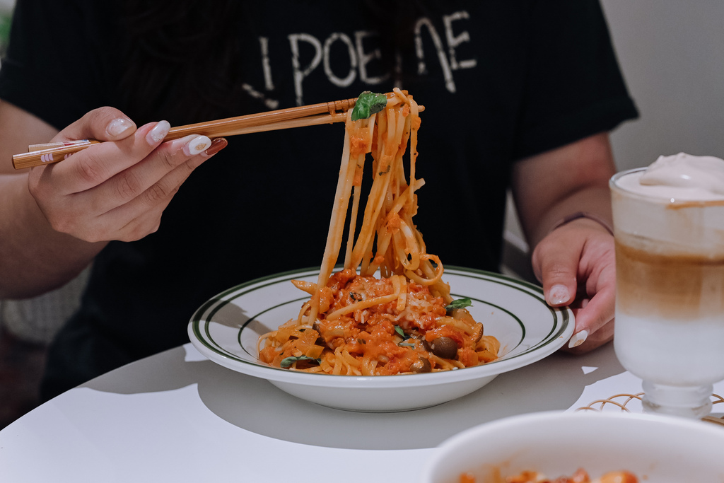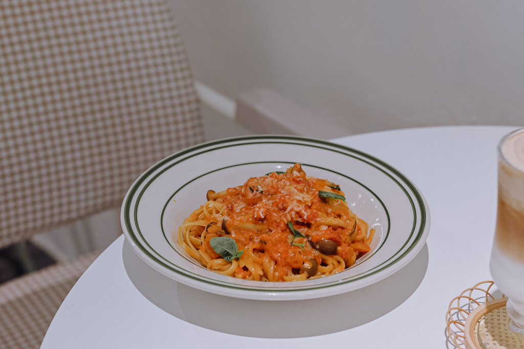 本來以為是間網美咖啡廳,餐點也會很網美,沒想到吃起來也很不錯,雖然不是很正統的義式風味,有點混韓風偏台的口味,我非常喜歡這樣的組合。番茄吃起來酸爽開胃配上羅勒,麵體有彈性每根都附著醬料,也是越吃越涮嘴,不小心就開胃了,這款我也很喜歡。