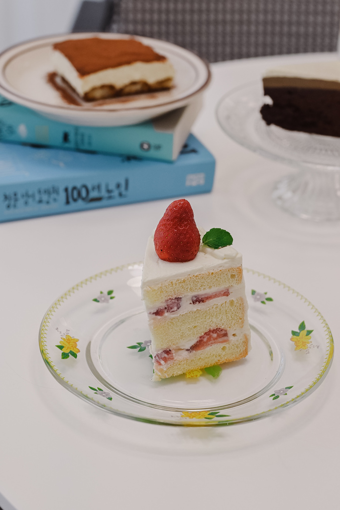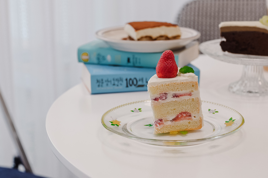 很幸運在草莓季尾聲還能碰到草莓本尊,嬌豔欲滴的草莓碰到單純原味的戚風蛋糕,看起來顏值滿分,搭配仙氣爆朋的透明花盤超級加分。草莓配上鬆軟的蛋糕體與滑順鮮奶油內餡,口感鬆軟濕潤充滿果香味,是款超少女甜點,輕輕柔柔。