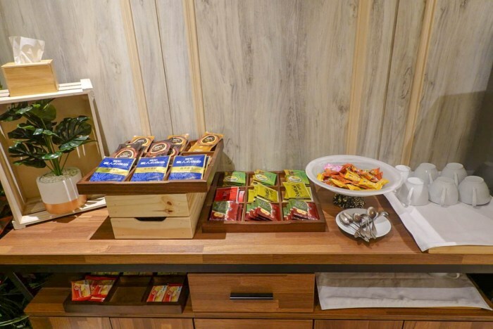 等待入住時,一旁還有迷你自助吧,不妨泡杯咖啡或者茶,吃些小點心愜意的等待。