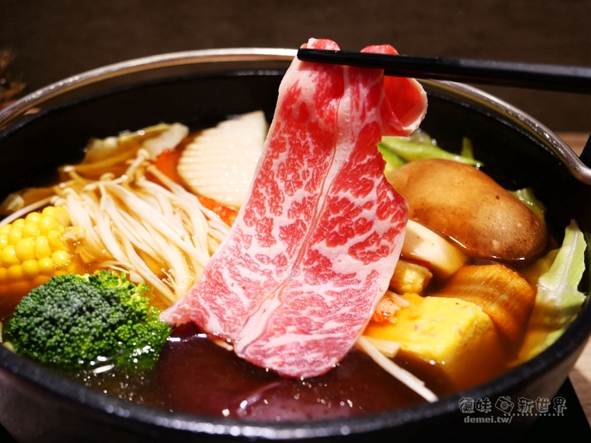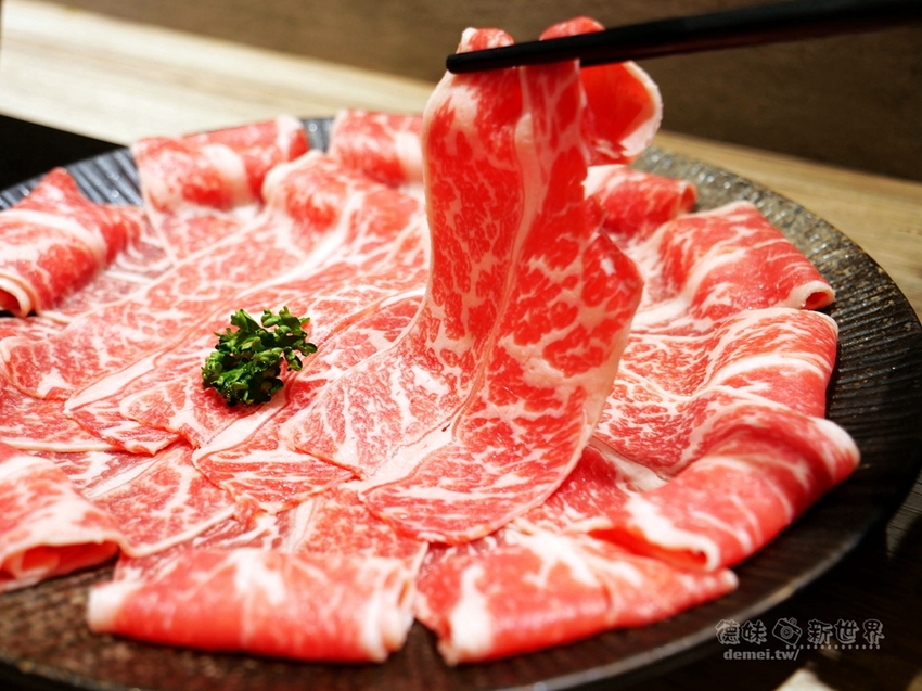 看這粉嫩漂亮的油脂花色,夾起大肉片薄厚均勻不散碎,入鍋輕涮7分最能感受肉汁。