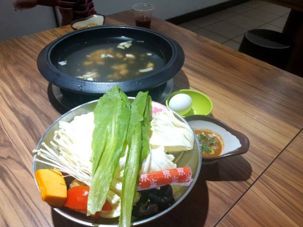 石頭火鍋的特色就是以洋蔥、蒜頭及少許麻油爆炒肉片,這種獨特的香氣,一吃就會上癮。店家一樣提供標準的菜盤及一顆蛋,爆炒的部分,店家都在廚房裡面完成。所以餐廳內不會有太重的油煙味。