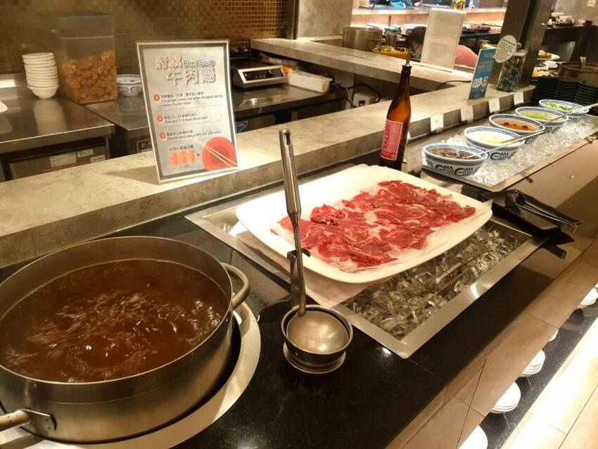 ▲▼登愣!台南的牛肉湯,想不到在飯店也可以看到,新鮮的溫體牛肉,鋪上薑絲後淋上熱滾滾的高湯,加些許米酒及蔥花,牛肉的新鮮以鮮甜呈現於味蕾,光是牛肉湯我就喝了2碗!